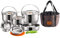 Camping Kochgeschirr Set, Camping Kochset, Töpfe und Pfannen für Lagerfeuer Kochen, beinhaltet Reise Einkaufstasche für 4-6 Personen