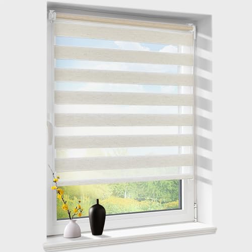Decorblind Doppeltes Rollo für Tag und Nacht, zur Wand- oder Deckenmontage, Maße des Rollos: 120 x 250 cm (B x L), cremefarben