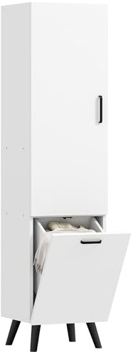 HOMCOM Schrank mit Tür und 5 Regalen, 3 Nischen, 2 Schubladen, weißes Aufbewahrungsmöbel für Schlafzimmer, Wohnzimmer, Büro