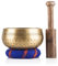 Reiche Paketkombination Das tibetische Gesangsinstrument besteht aus einer Klangschale, einem Holzhammer, einem Seidenkissen, einer Stofftasche und zwei Kupferglocken. Der Klang der Schale Gesang wirkt beruhigend und sorgt für Klarheit und Ruhe.
