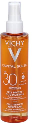 Vichy Capital Soleil Cell Protect Oil LSF 50+, Transparentes Sonnenöl für Gesicht, Körper & Haare, Hoher UVA/UVB-Schutz, Feuchtigkeitsspendend, 200 ml