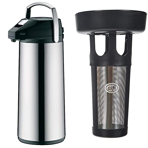 alfi Thermoskanne, Getränkespender groß, alfiDur Glaseinsatz, 3L & Teesieb Edelstahl für Teekanne, Aroma compact Teesieb für Thermoskanne oder Tasse, Teefilter 0097.000.000, 9 x 9 x 14,5 cm