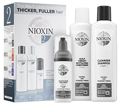Nioxin System 2 Kit enthält Shampoo, Spülung und Behandlung für dickeres und volleres Haar