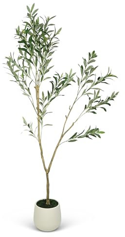 Phimos Künstlicher Olivenbaum, hoch, gefälschter Olivenbaum, Seidenbaum mit Pflanzgefäß, große künstliche Olivenzweige und Früchte, künstlicher Baum für modernes Zuhause, Büro, Wohnzimmer,