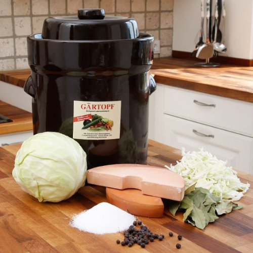 Ms-Steinzeug Gärtopf 10 L Braun + Beschwerungssteine | Gesunde Ernährung durch Fermentation | Einmachtopf zum Konservieren | Milchsäuregärung ideal für Vegetarier und Veganer | Inkl. Rezepte