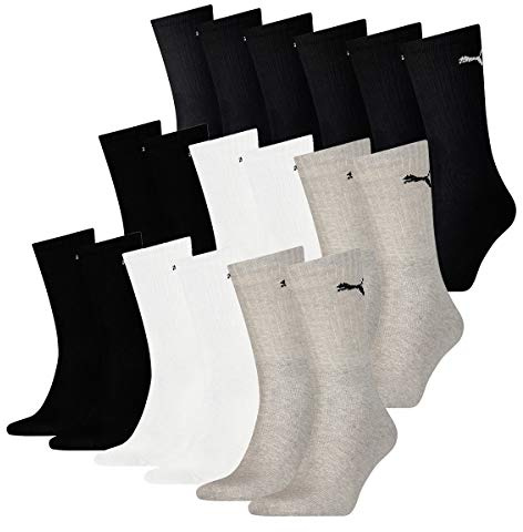 PUMA 18 Paar Socken Cush Crew Sportsocken Tennis Socken Unisex, Farbe:200 - black, Socken & Strümpfe:35-38