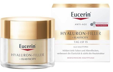 Eucerin Hyaluron-Filler + 3x Effect Tagespflege LSF 15 für trockene Haut 50 ml, Gesichtscreme zur Reduzierung von Falten und feinen Linien, feuchtigkeitsspendende Anti Aging Creme mit Hyaluronsäure