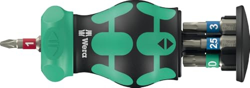 Wera Kraftform Kompakt Stubby Bithalter magnetisch mit Bit-Magazin im Handgriff & Ratschenfunktion für schwer zugängliche Bereiche, 6-teilig